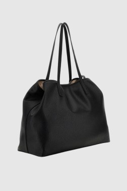 Czarna duża shopperka 2 w 1 Vikky II marki Guess. Torebka zamykana na magnes i zatrzask. Spód torebki chronią nóżki. W zestawie woreczek przeciwkurzowy oraz saszetka na pasku 45 cm o wymiarach 31 cm x 18 cm x 6 cm.