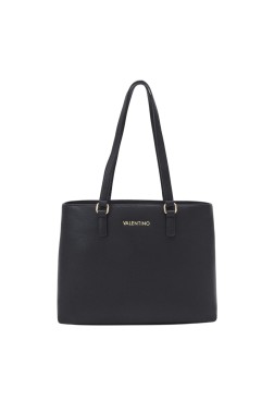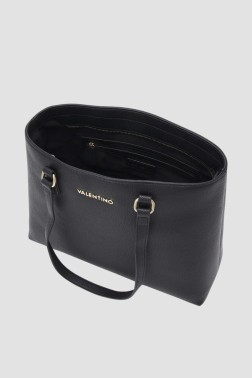 Czarna damska shopperka Never Borsa marki Valentino to elegancka i pojemna torebka wykonana ze skóry ekologicznej, idealna na co dzień. Duży rozmiar pozwala na wygodne przechowywanie dokumentów w formacie A4. Wewnątrz znajduje się jedna komora zamykana na zamek oraz trzy kieszenie: dwie wsuwane i jedna zasuwana. W zestawie znajduje się worek przeciwkurzowy, który zapewnia ochronę torebki podczas przechowywania.