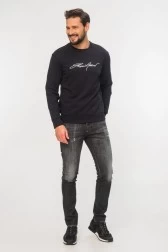 Bluza męska EMPORIO ARMANI w kolorze ciemnego granatu. Na piersi wyszywane logo w kolorze białym. Okrągły, prążkowany dekolt. Dół i rękawy zakończone ściągaczami.