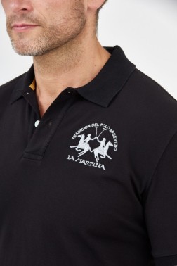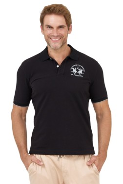 LA MARTINA Czarna koszulka polo z wyszywanym logo