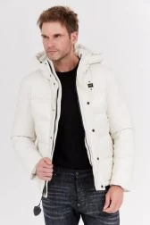 BLAUER Ecru puchowa kurtka męska z kapturem Eduardo