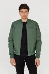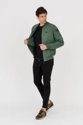 Zielona kurtka męska bomberka z dodatkową kieszenią wewnątrz.
