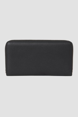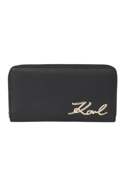 Damski skórzany portfel K/signature marki Karl Lagerfeld. Zamykany na zamek, wewnątrz zasuwana kieszeń na bilon, 2 przegrody, 12 miejsc na karty i 2 wsuwane kieszenie.