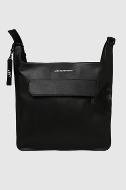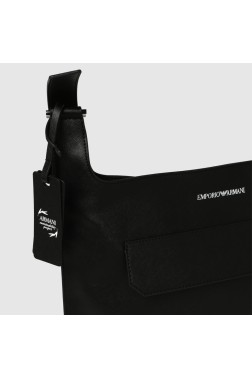 Męska torba EMPORIO ARMANI na ramię w kolorze czarnym. Z przodu logo w kolorze białym oraz kieszeń na zamek. Torba zamykana na zamek. Wewnątrz jedna kieszeń na zamek i dwie wsuwane. Regulowany pasek.