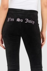 JUICY COUTURE Czarne welurowe spodnie dresowe z haftowanymi wisienkami