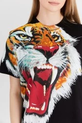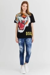 DSQUARED2 Czarny t-shirt damski z tygrysem