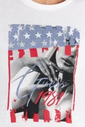 GUESS Biały t-shirt damski z nadrukiem i wiązaniem na plecach