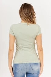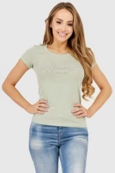 GUESS Jasnozielony t-shirt damski z logo i kryształkami