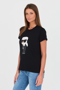 Czarny t-shirt damski marki Karl Lagerfeld.