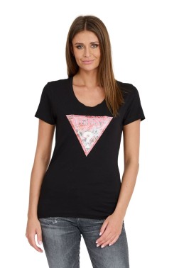 GUESS Czarny t-shirt Satin Triangle Tee
