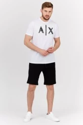 T-shirt męski ARMANI EXCHANGE w kolorze białym z dużym, szarym logo. Okrągły, prążkowany dekolt.