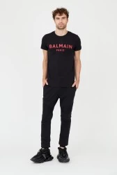 Męski czarny t-shirt z czerwonym logo marki BALMAIN.