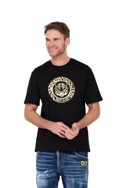 JUST CAVALLI Czarny t-shirt T-round Gold