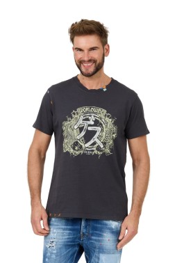 Szary męski t-shirt Japanese Ideog, marki Guess.