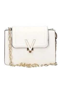 Damska torebka Queens marki Valentino by Mario Valentino. Klapa zamykana na zatrzask, wewnątrz jedna kieszeń wsuwana i jedna zasuwana. Posiada doczepianą rączkę w postaci paska o długości 40 cm, łańcuszek o długości 116 cm oraz regulowany pasek 120 cm.