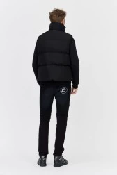 Чоловічий пуховик DSQUARED2 без рукавів чорного кольору. Великий білий логотип уздовж застібки. Застібається на двосторонню застібку-блискавку і липучки. Спереду дві кишені на блискавці. Всередині одна кишеня на блискавці.