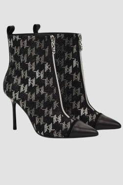 Чорні жіночі шкіряні ботильйони Ankle Boot Monogram на шпильці, від Karl Lagerfeld.