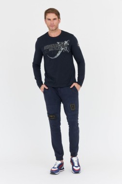 AERONAUTICA MILITARE Чоловічий темно-синій лонгслів з великим оксамитовим логотипом