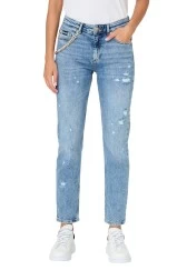 Сині жіночі джинси Just Cavalli з потертими деталями і декоративним золотим ланцюжком.