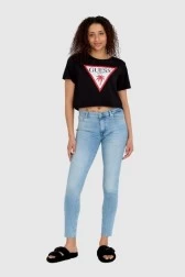 GUESS Жіноча коротка футболка чорна з необробленою обробкою в стилі "боксерський крій