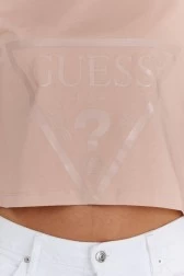 Жіноча коротка футболка GUESS пудрового рожевого кольору. Великий трикутний логотип спереду.