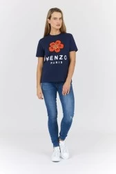 KENZO Жіноча темно-синя футболка з червоною квіткою