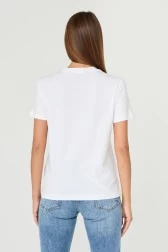 Жіноча бавовняна футболка R LOGO CRYSTAL від JUST CAVALLI з великим логотипом, прикрашеним стразами. Виготовлена зі 100% високоякісної бавовни, вона забезпечує не лише комфорт при носінні, але й довговічність.