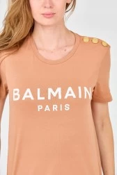 BALMAIN Коричнева жіноча футболка на ґудзиках