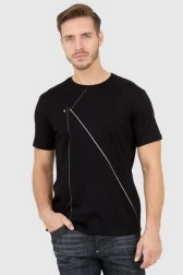 ARMANI EXCHANGE Чорна чоловіча футболка зі сріблястим логотипом