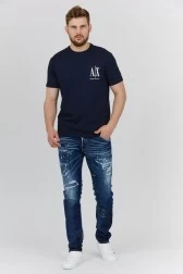 ARMANI EXCHANGE Чоловіча темно-синя футболка з вишитим логотипом