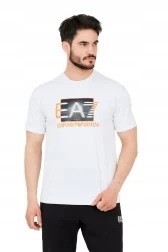 Біла чоловіча футболка з рухомим голографічним логотипом.