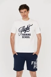 Біла чоловіча футболка з короткими рукавами та оксамитовим логотипом.