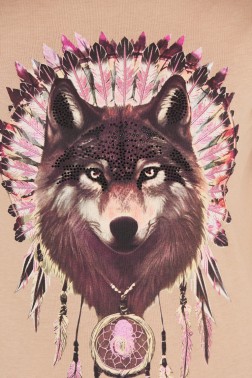 GUESS Коричнева футболка з вовком