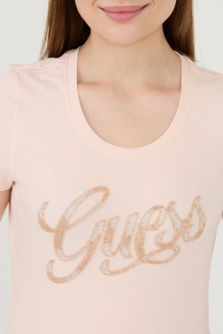 Біла жіноча футболка з бісеру Script Tee від Guess.
