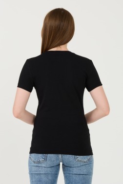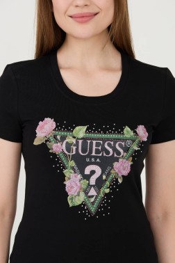 Чорна трикотажна футболка з квітковим принтом від Guess.