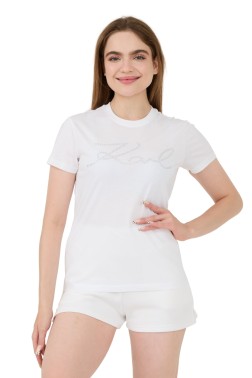 Біла футболка з логотипом KARL LAGERFELD зі стразами
