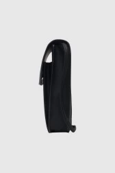 Чорний чохол для телефону. Відкидний клапан на застібці. Два відділення всередині. Чохол можна носити на плечі на регульованому шнурку.