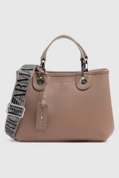 Маленька сумочка EMPORIO ARMANI світло-коричневого кольору. Знімне кільце для ключів. Знімний ремінець з логотипом та можливістю регулювання. Знімні ручки. Відділення з магнітним затискачем. Косметичка на блискавці всередині.
