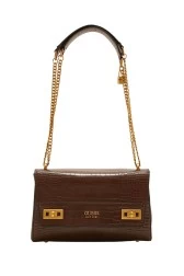 Сумочка Katey Croc від GUESS виготовлена з високоякісної органічної шкіри з текстурою під крокодилячу шкіру, що випромінює розкіш та елегантність. Її клапан закривається на два магніти, а всередині є шість відділень для карток і одна кишеня для карток. Крім того, на тильній стороні сумки є кишеня, що ідеально підходить для швидкого доступу до найнеобхідніших речей. Ніжки на дні сумки захищають її від пошкоджень. Ланцюжок сумки дозволяє носити її на плечі або тримати в руці, залежно від ваших уподобань.