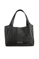 Вовняна сумка від Valentino by Mario Valentino. Виготовлена з високоякісних матеріалів з імітацією крокодилячої шкіри. Має одне відділення, що закривається на гачок. До неї додається невелике саше розміром 29 x 18 x 11 см, яке можна носити на плечі завдяки прикріпленому регульованому ремінцю. Усередині саше є одна кишеня і одна кишеня на блискавці.