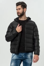 EA7 Чорний пуховик з капюшоном