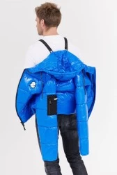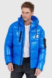 Синій глянцевий пуховик з логотипом INVICTA