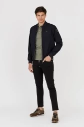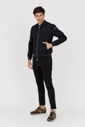 Czarna kurtka męska bomberka z dodatkową kieszenią wewnątrz.