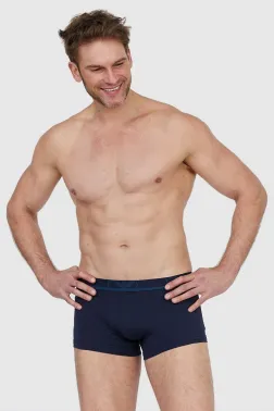 Три пари бавовняних трусів-боксерів темно-синього кольору. Оздоблені резинкою з логотипом у синьому, темно-синьому та бордовому кольорах.
