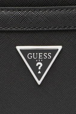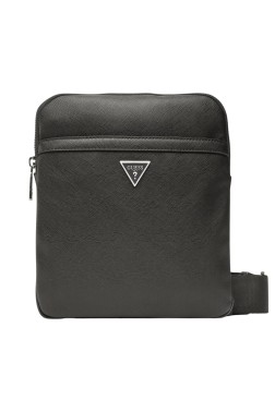 Чорна сумка 'Milano Crossbody Flat ' від Guess. Виготовлена з екологічно чистої шкіри, на регульованому ремінці довжиною 130 см. Всередині є 1 відділення та 2 кишені. На зовнішній стороні сумки є 2 кишені.