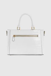 Елегантна сумка-шоппер James від GUESS з декоративним замком і прихованим ключем. Виготовлена з високоякісної еко-шкіри для довговічності та комфортного носіння. Має практичні ручки та регульований ремінець, щоб пристосувати її до ваших уподобань. Внутрішній простір сумки розділений на три відділення, два з яких закриваються на магніт, а середнє - на суцільну блискавку. Крім того, всередині є дві кишені з клапаном та одна велика кишеня на блискавці. На тильній стороні сумки є кишеня на блискавці, а знизу сумка захищена ніжками.