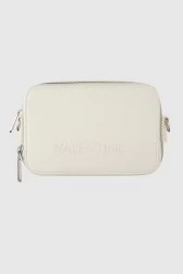 Torebka w kolorze ecru z tłoczonym logo VALENTINO. Dwie komory zasuwane na zamek oraz jedna dodatkowa kieszeń z tyłu na suwak.