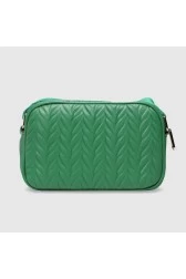 Рельєфна сумка з логотипом і прикріпленим мішечком зеленого кольору. Застібка на блискавці. Всередині одна кишеня на блискавці та одне невелике відділення.