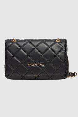 Жіноча сумка Ocarina середнього розміру від Valentino by Mario Valentino. Клапан закривається на застібку, внутрішнє відділення на блискавку. Усередині одна кишеня і одна кишеня на блискавці. Має золотий ланцюжок, який можна носити на плечі (висота 58 см) з маленькою ручкою (8 см) або в руці (32 см). Мішечок для пилу в комплекті.