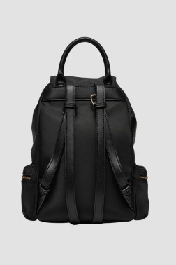 Чорний жіночий рюкзак 'Backbag' від Guess. Виготовлений з поліестеру, має одне відділення на магнітній застібці та три кишені на блискавці.